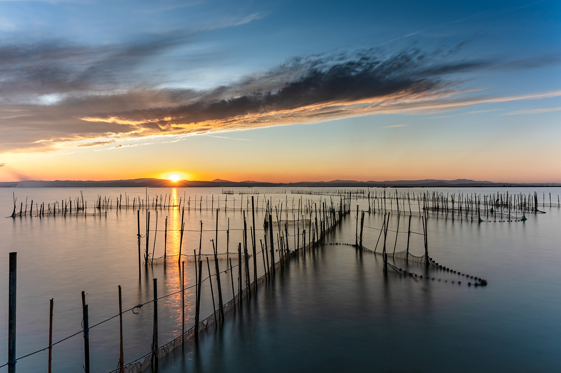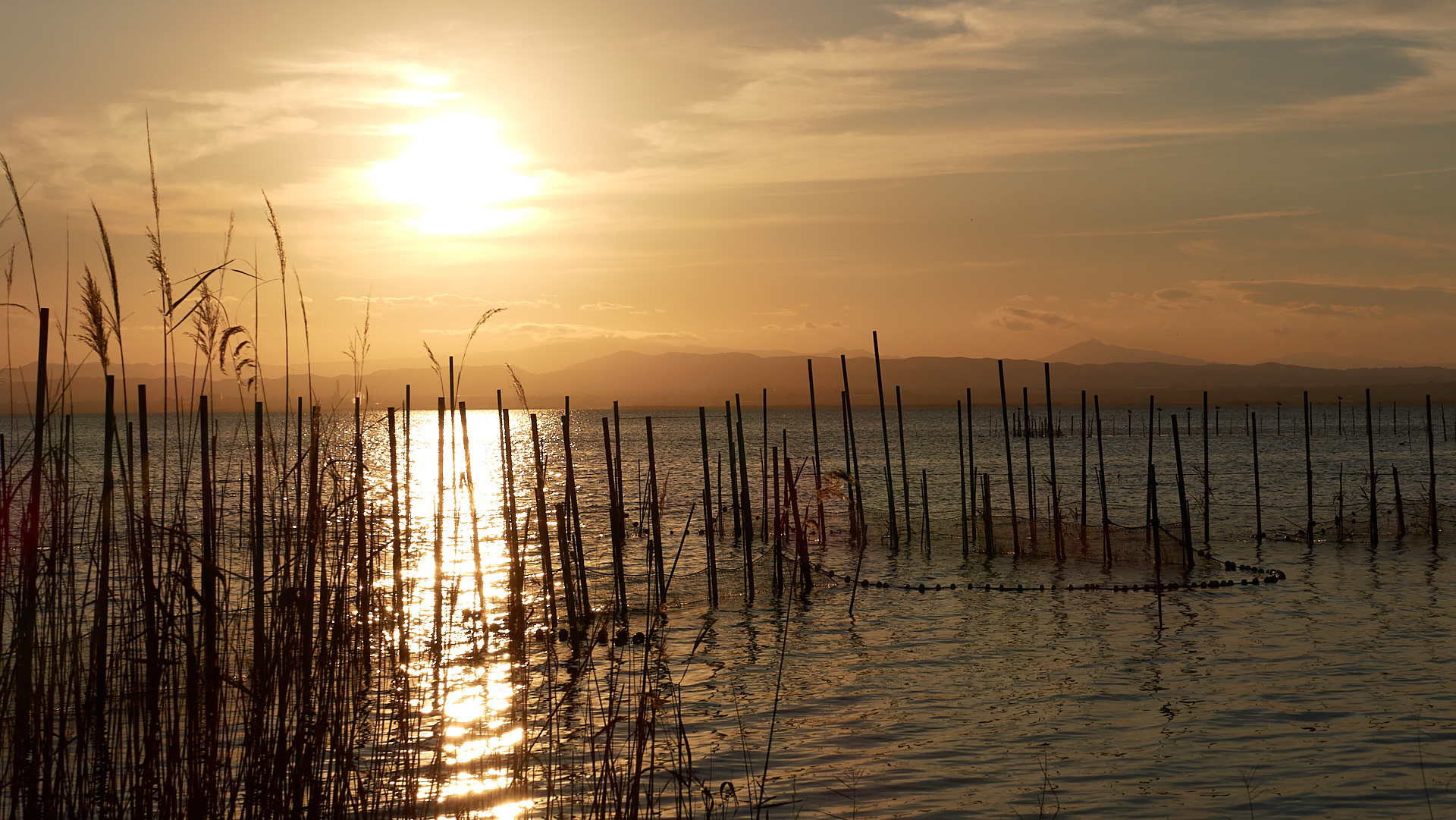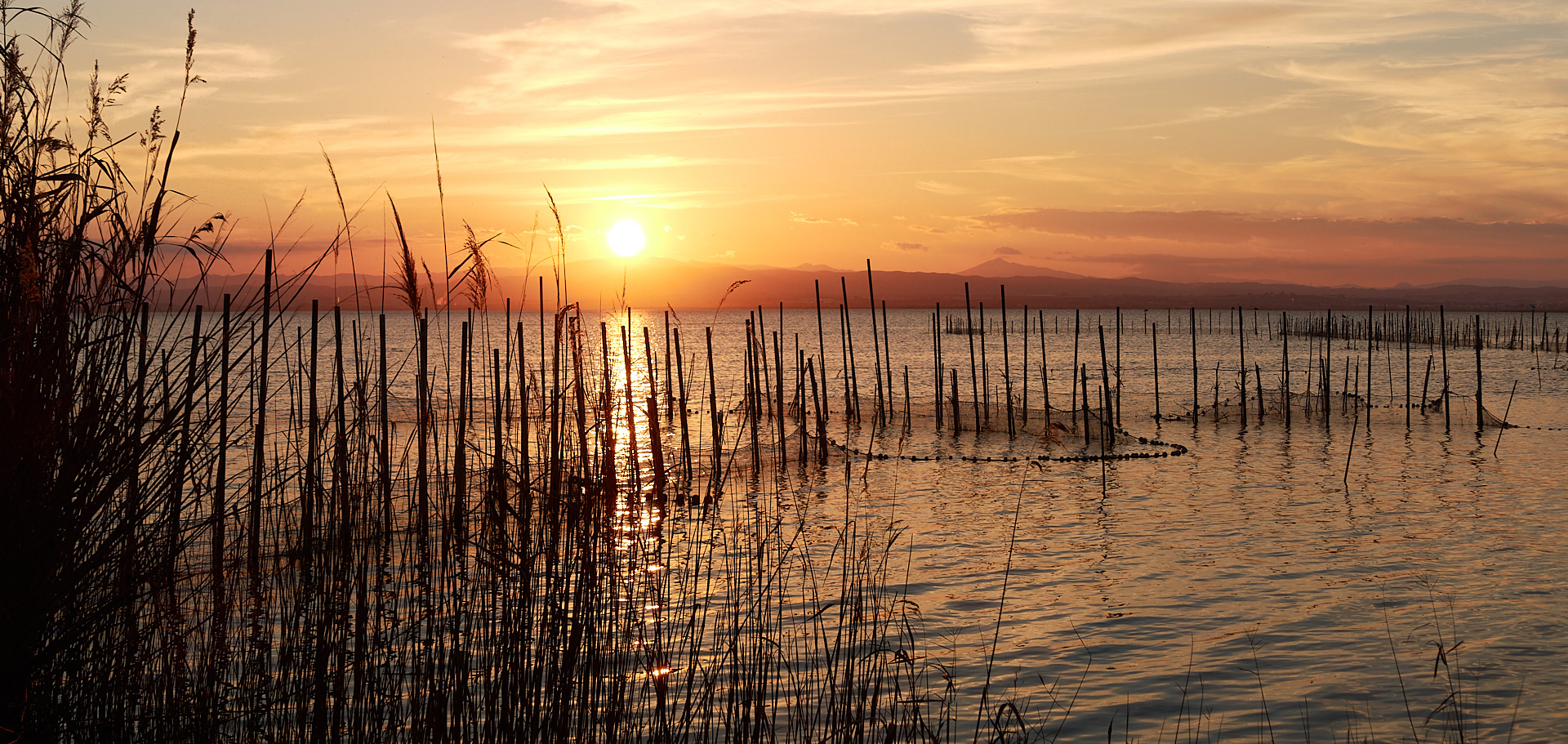 Declarado parque natural, laguna junto al mar separada por dunas de arena y rodeado por arrozales.