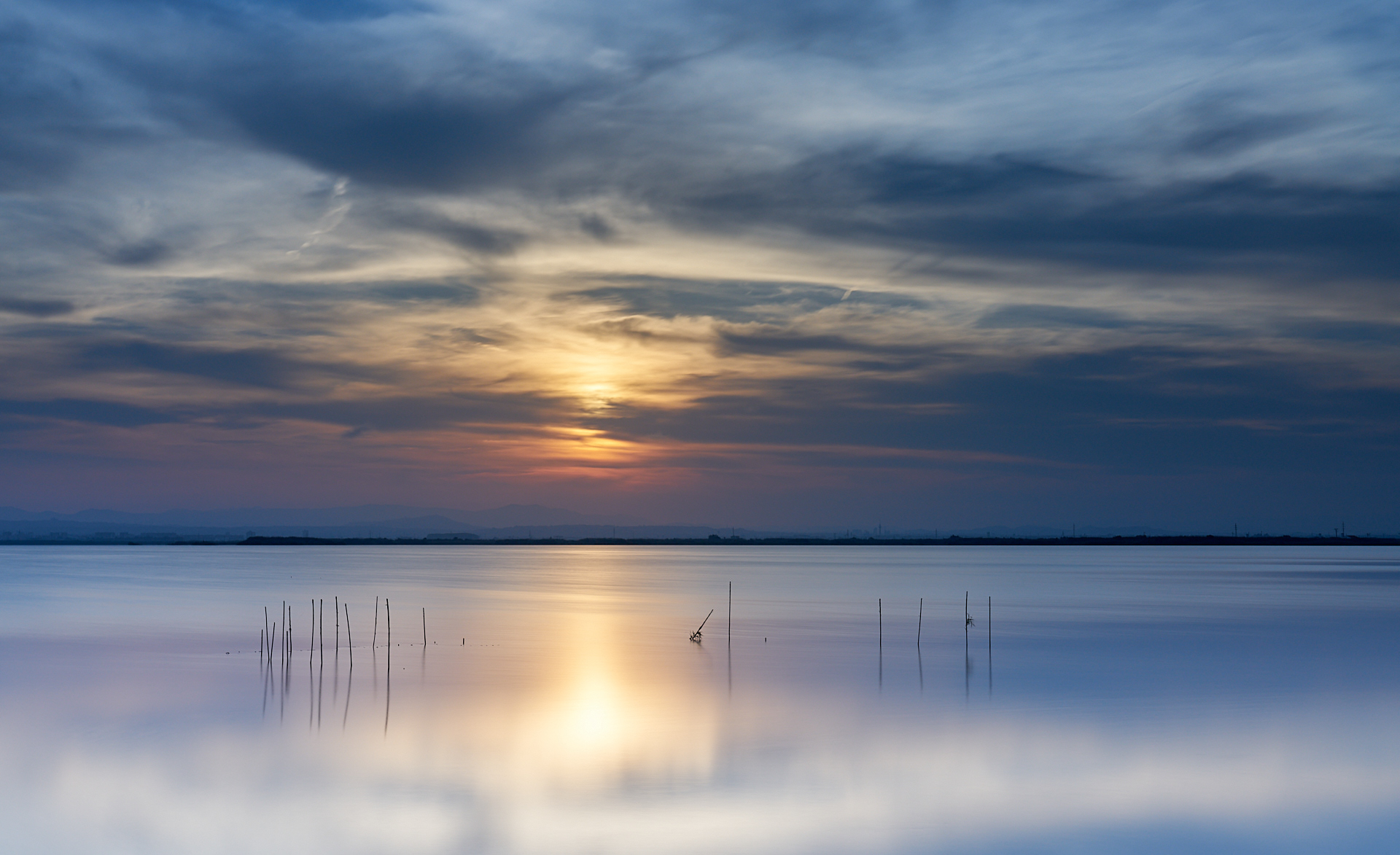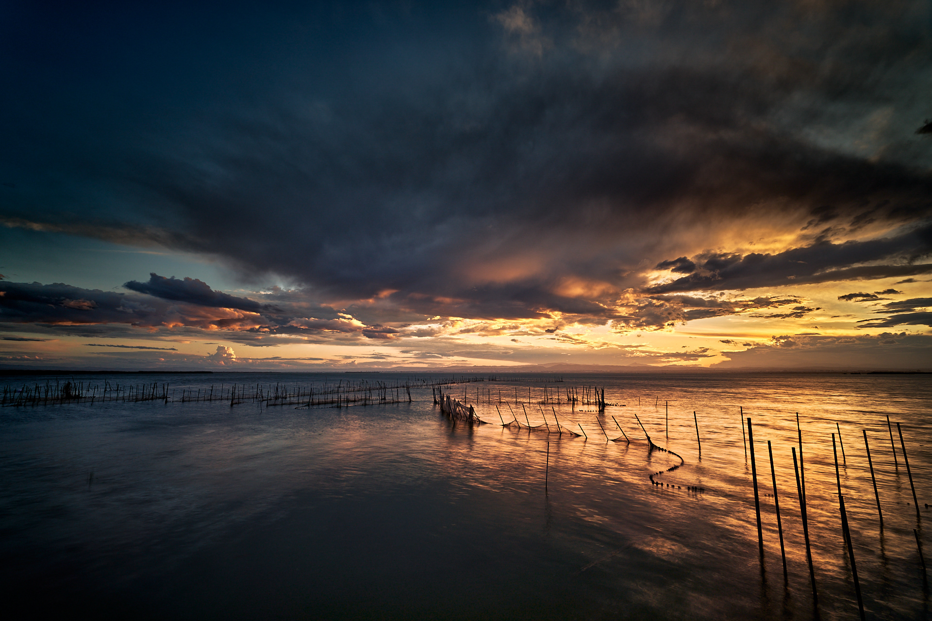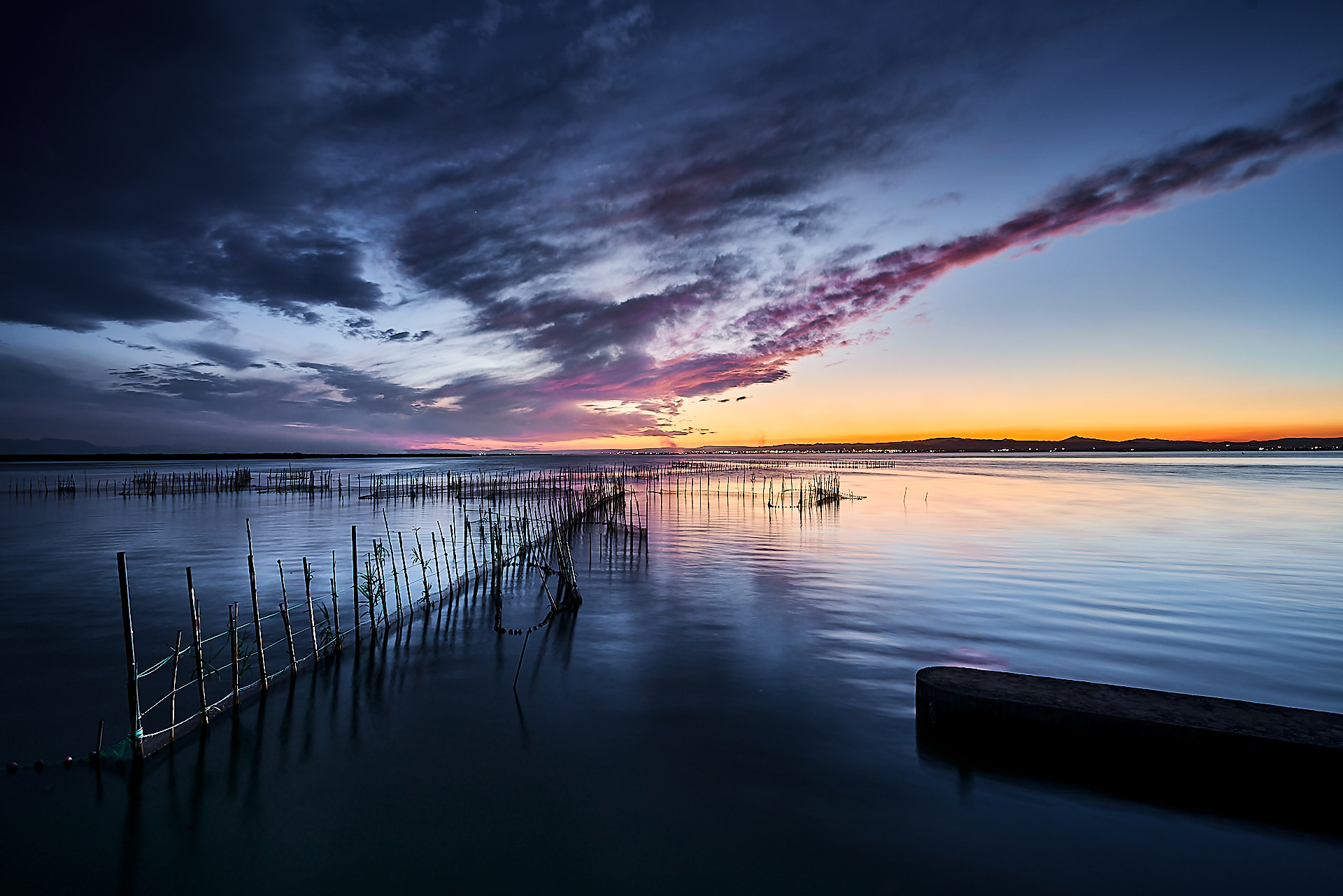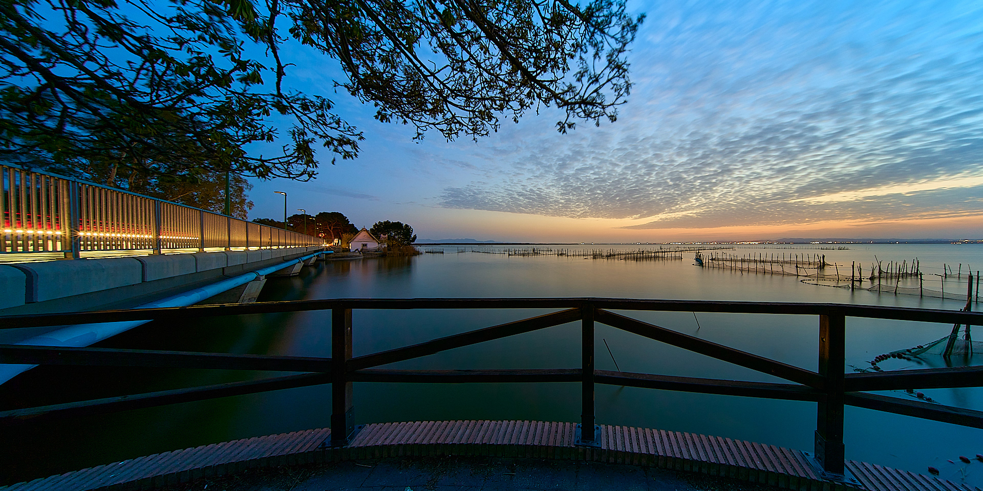 Declarado parque natural, laguna junto al mar separada por dunas de arena y rodeado por arrozales.